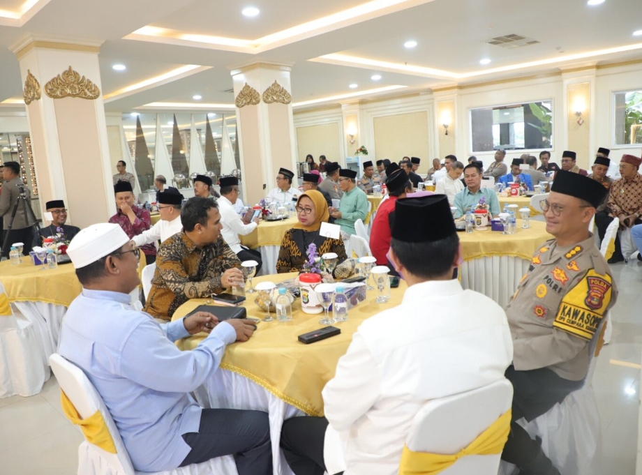 Sebagai penutup, acara diakhiri dengan buka puasa bersama dan ramah tamah dalam suasana hangat dan penuh kekeluargaan, mencerminkan kuatnya sinergi seluruh elemen dalam menjaga kondusivitas di Provinsi Lampung. [Magang_Yuki Haniyah/Samsul Sunardi]