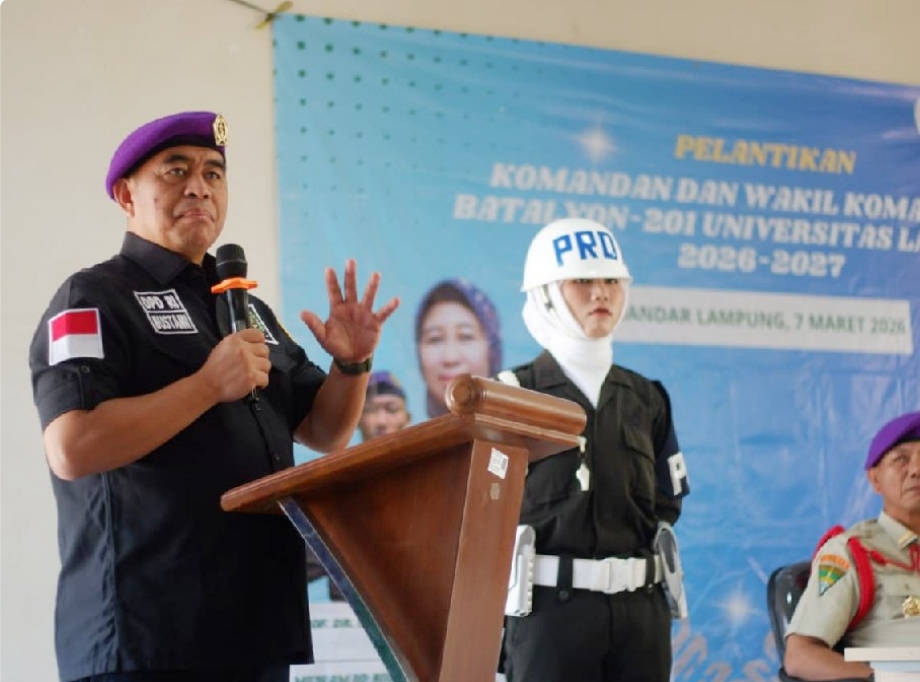 Lampungline.com, Bandarlampung – Resimen Mahasiswa (Menwa) Satuan 201 Radin Inten Universitas Lampung (Unila) resmi memiliki kepemimpinan baru setelah Muhamad Ridho Jurihim dilantik sebagai Komandan dalam upacara yang digelar di Gedung Graha Kemahasiswaan lantai 2 Unila, Sabtu, 7 Maret 2026.